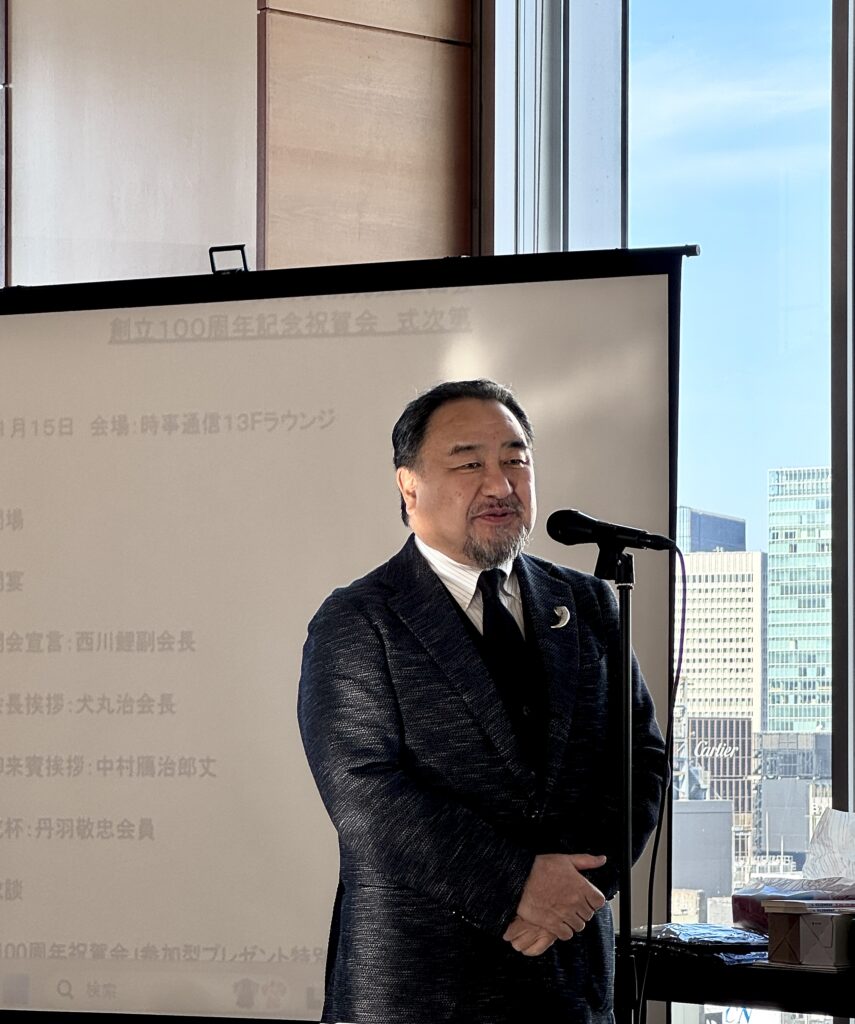 100周年を寿ぐ集いとして祝賀会が2025年11月15日に歌舞伎座にほど近い時事通信ビル13階で催されました。